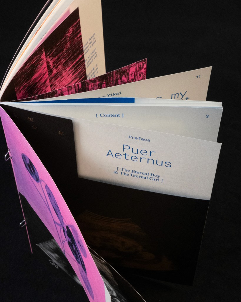 As an editor, interviewer, and reader, this zine portrays fragments of these individuals’ lives. How do they come to recognize themselves as being in a state of eternal adolescence? How do they annotate or define such a self-understanding? After trading the creators’ journeys—both active and passive—through the concept of ”Puer Aeternus“, how might readers reflect back onto themselves? These are the questions I raise through this zine.